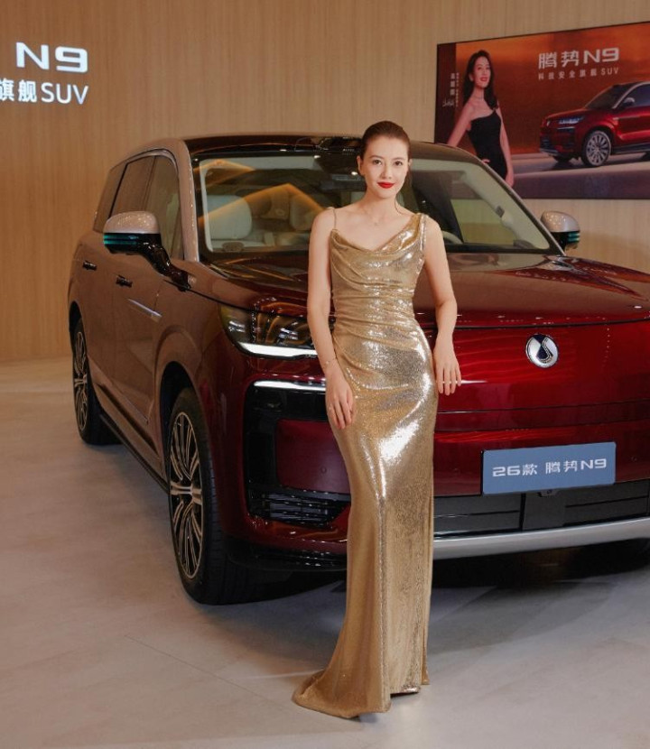 搭配上,她选择了简约细巧的项链、手链点缀,没有过多繁杂的装饰,让视觉重心完全集中在裙子本身,同时也凸显了她温润的气质。发型则是利落的扎发,露出饱满的额头和精致的五官,红唇点缀,与金色亮片形成鲜明对比,贵气中又带着几分明艳,气场全开又不失温柔。