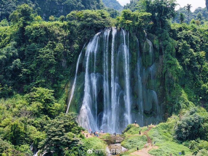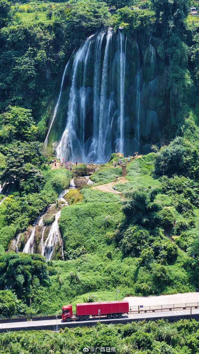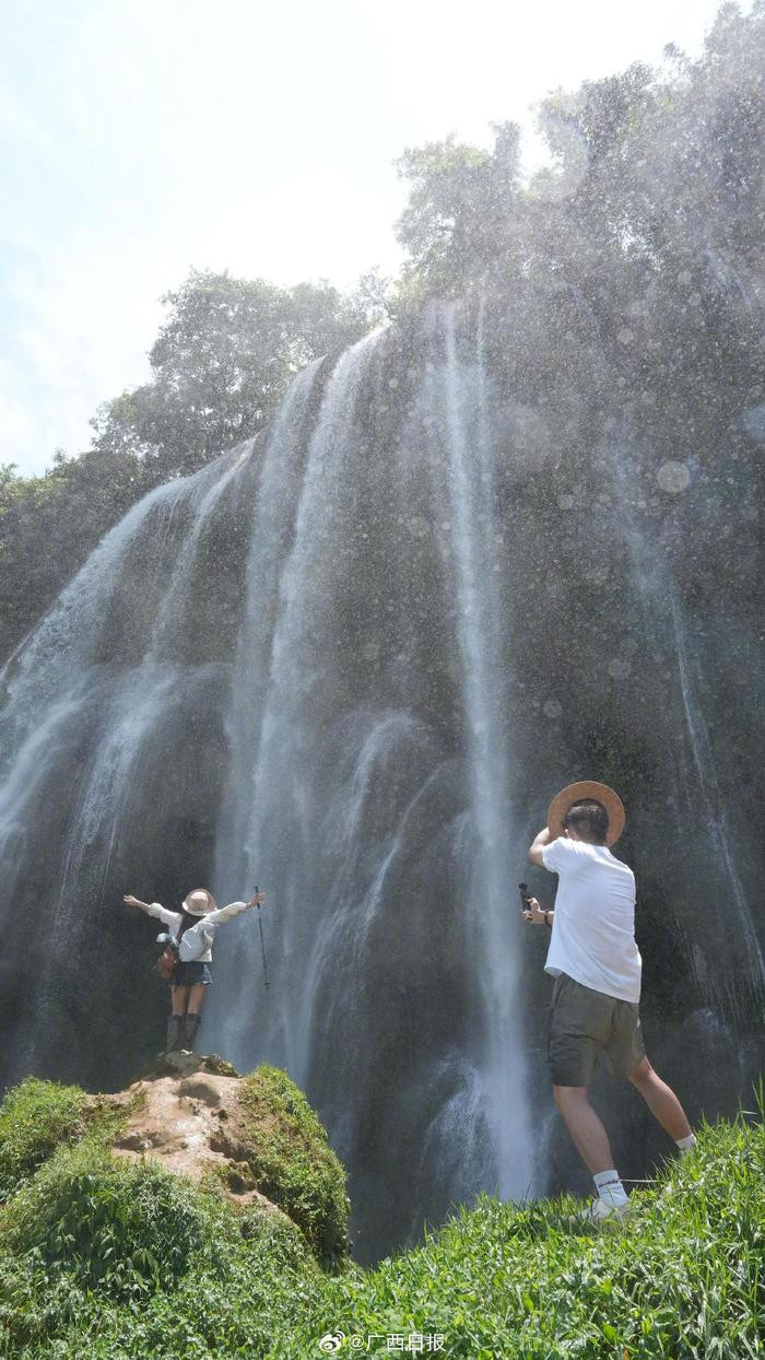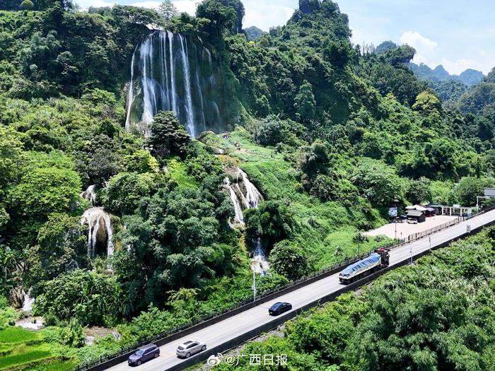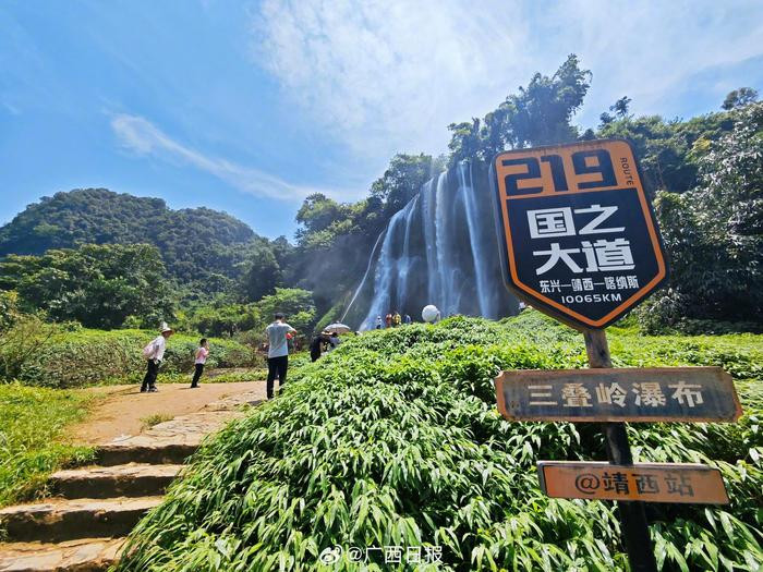 #桂在交旅畅游广西#[徐霞客都称赞的瀑布!就在国道359线靖西段]7月30日,“桂在交旅”采风团来到靖西古八景之一的三叠岭瀑布。瀑布高约100米,宽达30米,水流从峭壁顶端倾泻而下,如银河倒悬,水珠飞溅,熠熠生辉。徐霞客曾途经此地时,被其宏伟气势折服,在其《粤西游日记》中写道:“轰雷倾雪之势,极其伟壮,西南来从未之见也。”三叠岭瀑布位于国道359线靖西段旁,该路段堪称靖西市旅游的“黄金大动脉”,全长97.4公里,既是区域物流运输的重要通道,又串联起古龙山大峡谷、通灵大峡谷、三叠岭瀑布等多个核心景区,同时还是环广西公路自行车世界巡回赛的赛道之一。(广西云-广西日报记者梁菁惠刘俊聪见习记者李家州)#行在乡村游在路上##壮美广西交通先行#@广西交通@广西文化和旅游厅@广西公路发展中心@广西旅游发展集团
