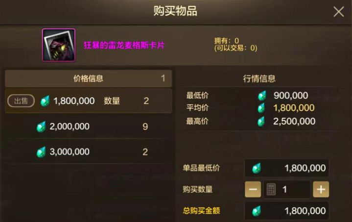 8月份一张大雷龙卡大概是180万泰拉!就算到70版本中期,这卡片也是腰带的最强附魔。