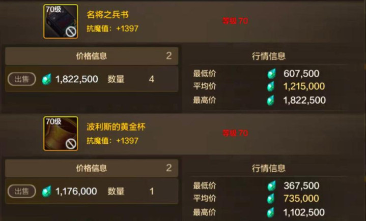 而且随着真理套毕业的土豪增多,“名将之兵书”甚至要突破200万泰拉!波利斯的黄金杯输在属性太全面,而且要增幅12才可触发全部效果,神豪毕业后需求骤降,于是全服都在暴跌,一些大区的黄金杯才70万泰拉。