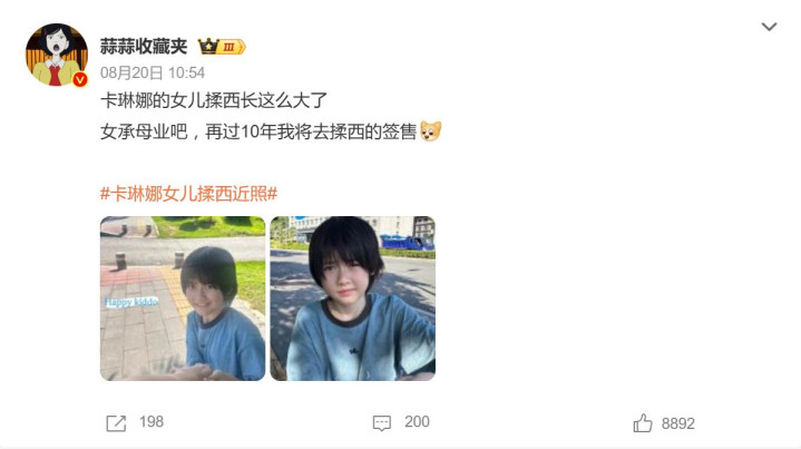 8月20日,COS圈顶流卡琳娜在社交平台扔出一记“颜值炸弹”——首次公开女儿揉西的全新短发造型,瞬间引爆全网热议。