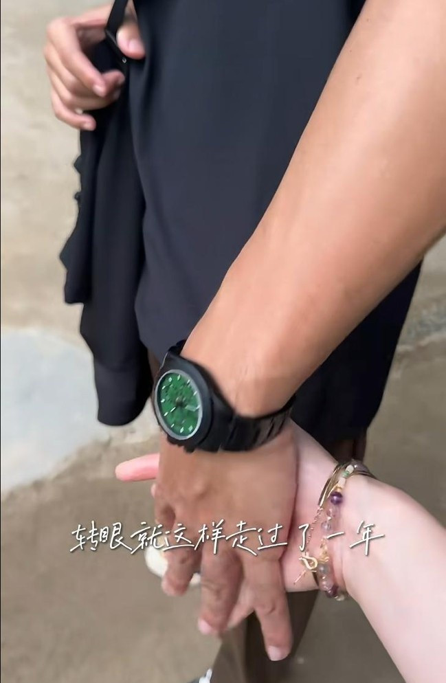 他手上戴的表才几千块,从去年戴到现在没换,全身没什么奢侈品,可给王冠买杯子一花就是3000多,业余还陪她旅游,亲自当摄影师拍出美照