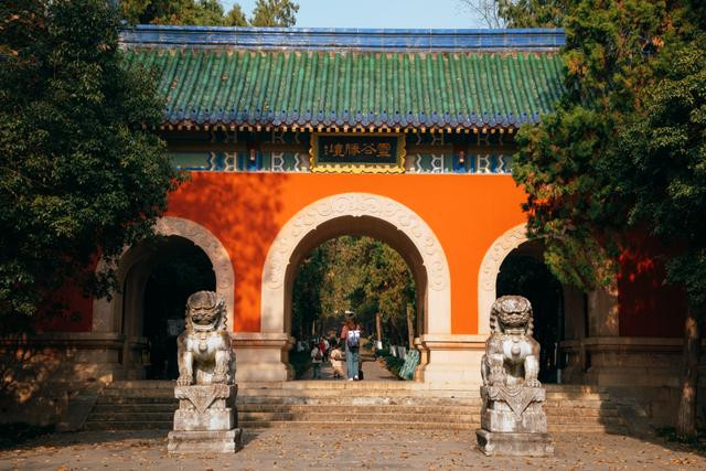 步入景区,红山门映入眼帘。门额高悬“灵谷胜境”四字,红墙碧瓦在阳光映照下光影斑驳,颇有一番韵味。