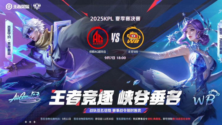 另外近期王者荣耀的KPL夏季赛的总决赛也要开启了,进入决赛的两支队伍分别是成都AG和北京WB,在9月7号就会开启决赛。