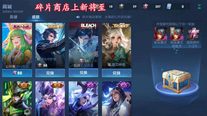 另外还有友情商店,每个星期在友情商店中,也可以兑换一个皮肤碎片。