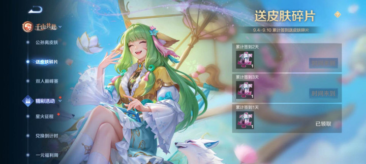 皮肤碎片不够的玩家,这段时间登陆游戏可以领取皮肤碎片,在4号到10号这段时间,玩家登陆三天时间,就可以领取三个皮肤碎片。