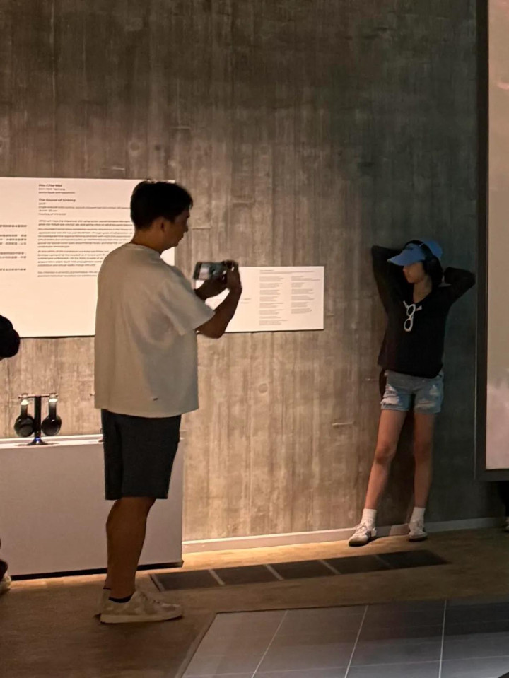 前两天,有网友在香港看展的时候还偶遇到了黄磊一家,当时黄磊正在给多妹拍照,多妹真的很会摆pose,有颜值、有身材、会打扮,时尚达人范十足。