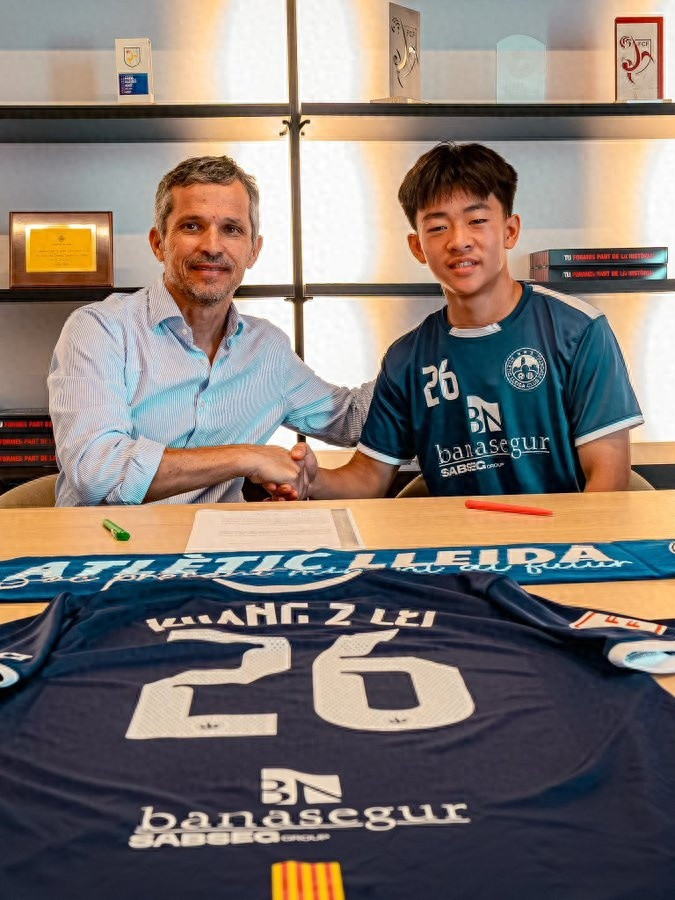 7月28日莱里达竞技官方宣布,16岁中国球员邝兆镭加盟,双方签约至2027年。今日莱里达竞技社媒晒出邝兆镭签约、亮相的视频和照片。