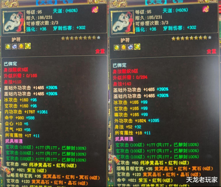 一个是冰玄160的双属性小极品,虽然没有体力,但是带命中、会心和所有属性。