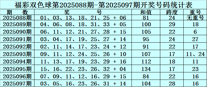双色球第2025097期奖号开出:03、05、16、23、26、31 + 14,红球号码和值开出104,跨度开出28,开出重号1个:16。蓝球为2路号码。