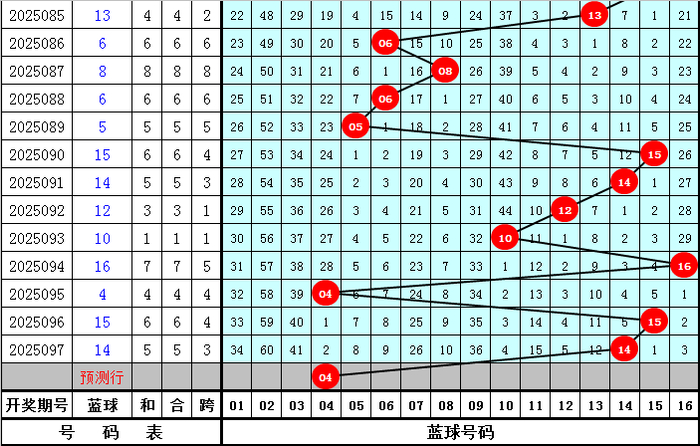 蓝球分析:上期开出蓝球号码14,号码遗漏值为5,温热蓝球号码近期表现活跃,本期预计蓝球再出温热号码,参考蓝球号码04。