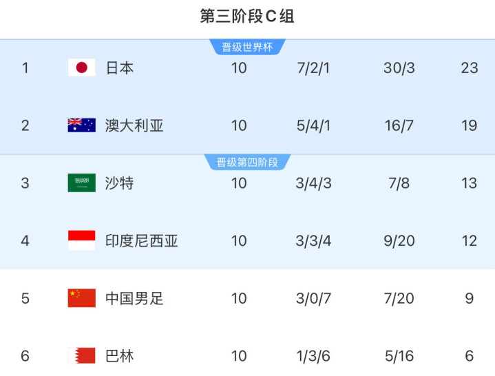 最终,国足排在小组第5被淘汰出局,失去了冲击2026年美加墨世界杯的希望。