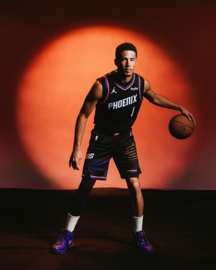 值得一提的是,布克此次拍摄新球衣定妆照,没有穿着在自己的签名鞋,而是选择穿上了一双科比的球鞋。