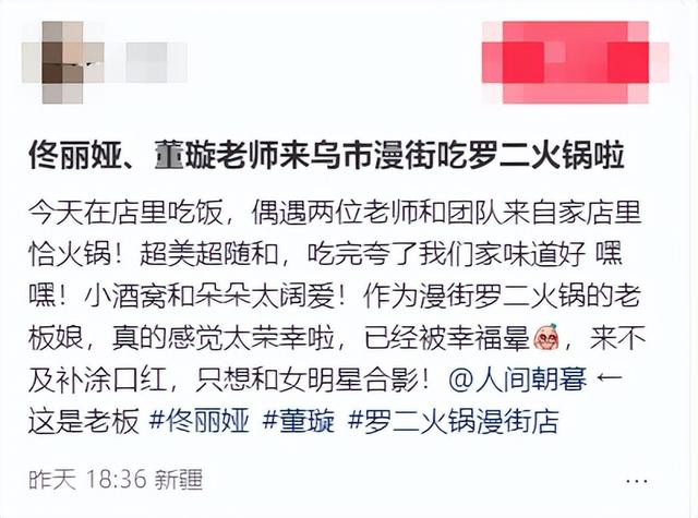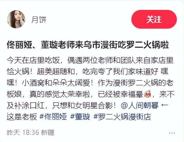 火锅店里佟丽娅大脑门亮的,都快比的上店里的“灯泡”了。