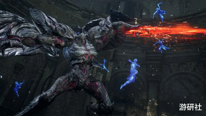 然后是玩法部分,就像《失落之魂》预告片里一直展示的那样,这确实是一款风格化非常明显的ACT游戏,框架近似于鬼泣系列,主角性能很高,可以通过“轻”“重”等不同攻击指令的交替输入,衍生出多种连段和招式。