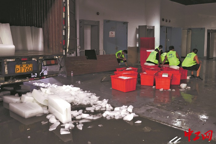7月5日,南京奥体中心,由于天气炎热,主办方准备了1万余块冰块用于降温。