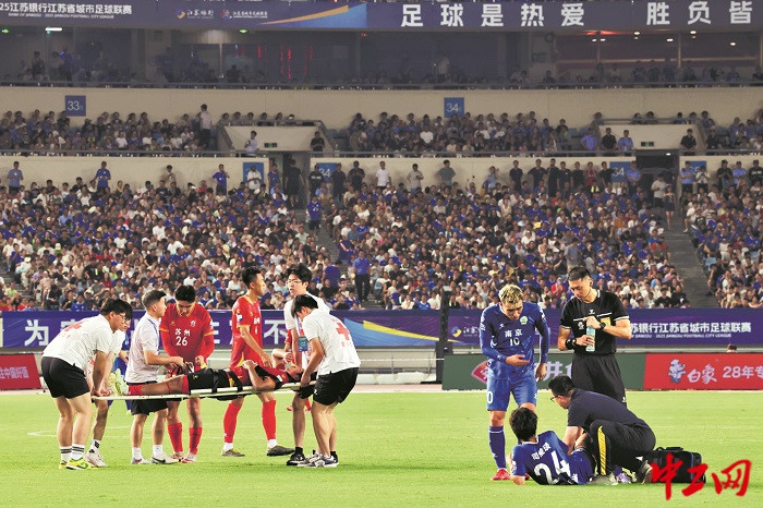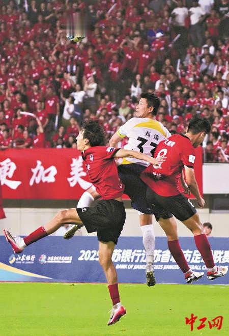 7月5日,南京奥体中心,“苏超”第六轮南京对阵苏州,双方激烈交锋。