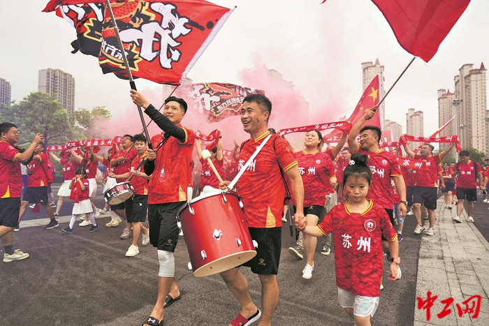 商场中庭的直播大屏前人头攒动,欢呼声此起彼伏;72岁老球迷与外国观众在“苏超专列”上共同加油呐喊;市民广场人山人海,“隔空”的助威声划破夜空……“苏超”如一簇跃动的火种,点燃了蛰伏在市井街巷间最纯粹的热爱。这场全民狂欢的背后,是城市与球迷的“双向奔赴”。