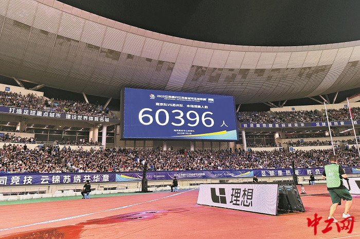7月5日,南京奥体中心,“苏超”第六轮比赛现场观众达60396人,刷新了国内业余足球赛事上座纪录。