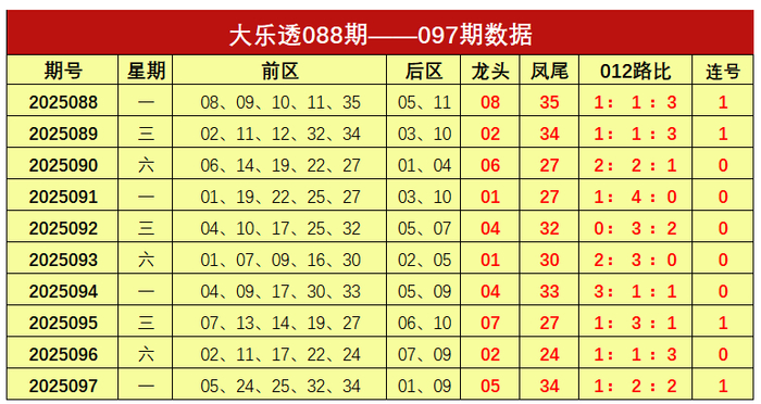 谢涛大乐透第2025098期本期推荐: