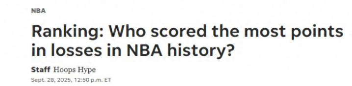 詹姆斯毕竟进入联盟20多年,球龄同样是现役最长,所以经常也会出现,球队落败他依然砍下高得分现象。只不过詹姆斯被质疑,应该是这几年在湖人,有时候大局已定,他依然选择铁血两分刷数据,这给人留下的印象实在太深刻。当然大部分巨星,这份榜单排名都比较靠前,科比、卡尔-马龙和贾巴尔紧随其后,他们还都在湖人效力过。