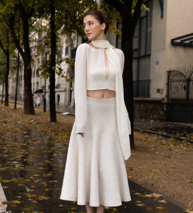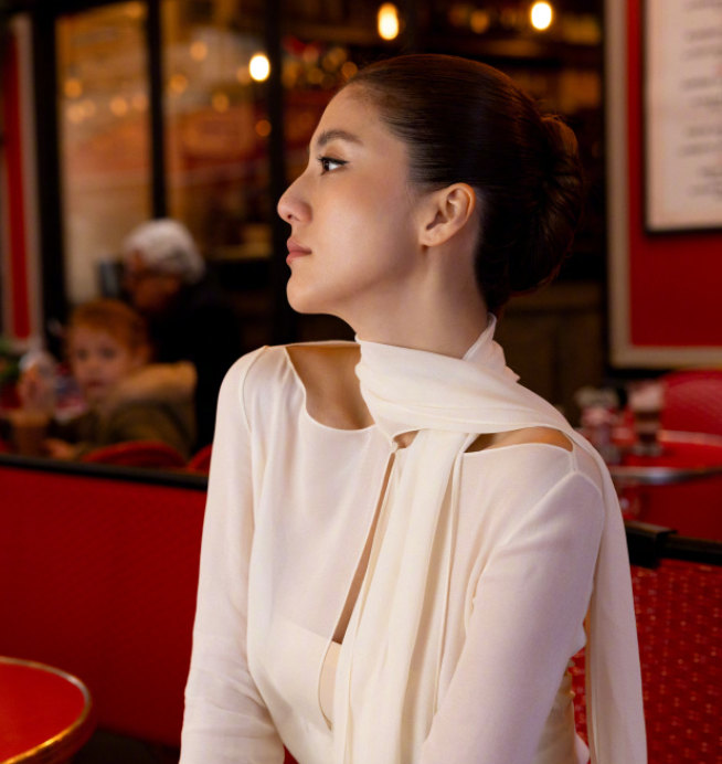 吴千语的简约白色造型,还是很有感觉的,nice!